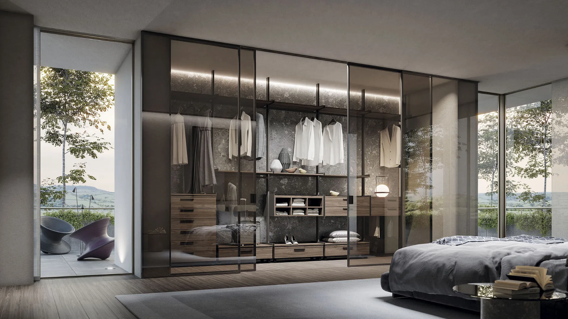 Doal presents a collection of interior doors, walk-in closets, niches, and bookcases designed to think freely about home and office spaces, both static and dynamic. Doal produces a wide range of items that define the style and the charm of an environment. All Doal products are tailor-designed and developed with sustainable materials, such as glass and aluminium, 100% recyclable.
