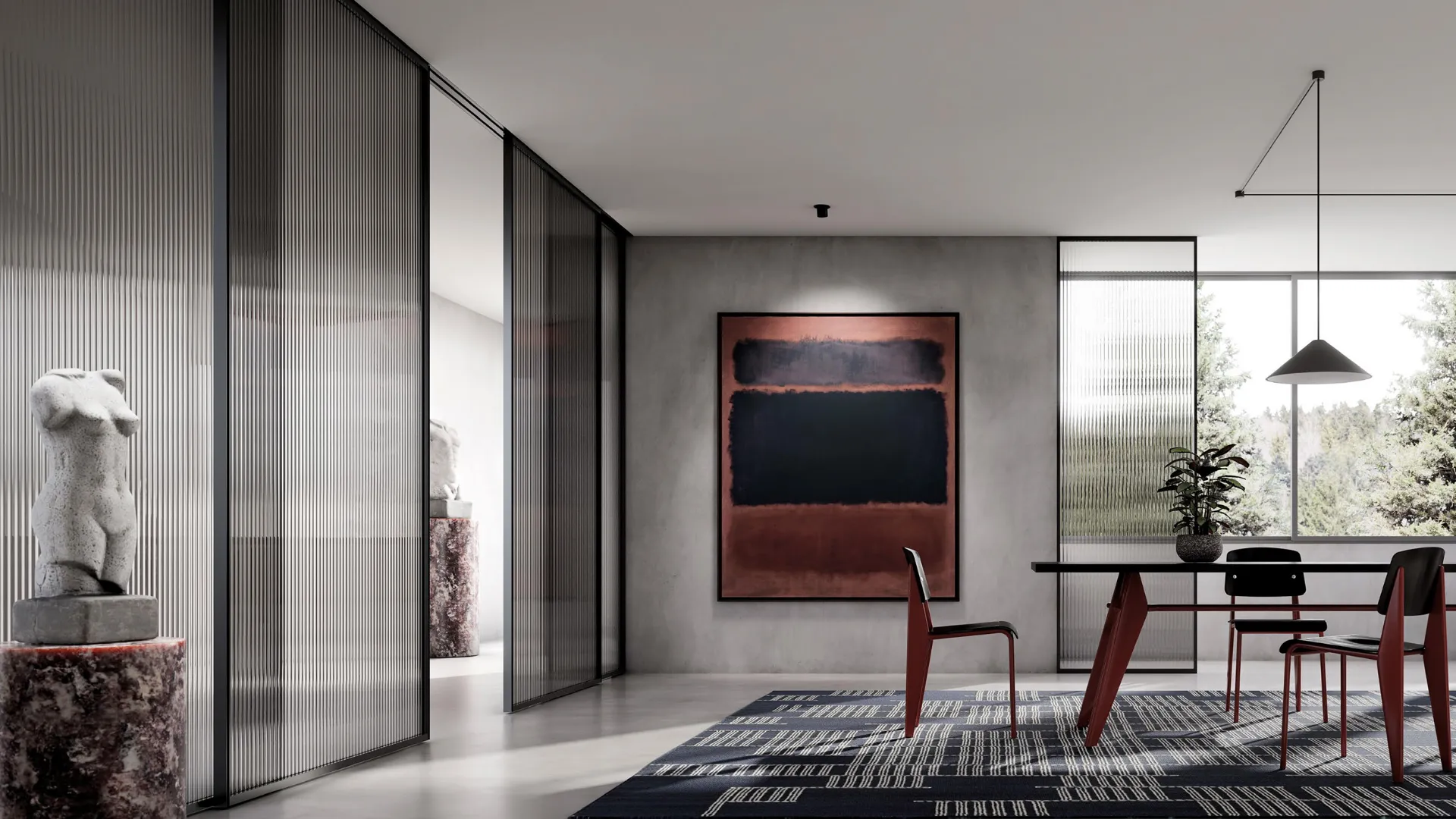 Dimensions, colours, and finishing create endless tailored combinations for every space. Glass transparencies, reflections, or refractions help in ensuring residential comfort in every house and office environment, providing privacy or removing barriers made by traditional solutions.