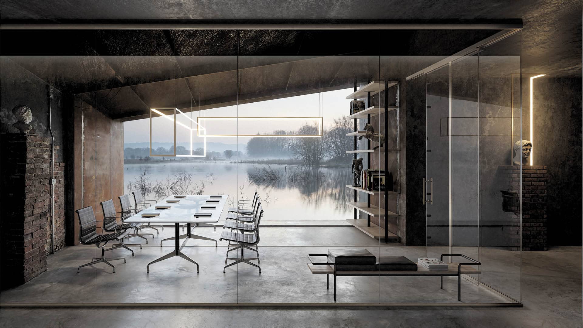 The fixed glass partitioning allows to separate two different areas of an environment, yet keeping the visual continuity between them. This element goes from the floor to the ceiling and can be installed on its own or close to other doors. To create a unique graphical effect, sleepers can be applied on the glass, choosing from the products in our catalogue or choosing custom designs.