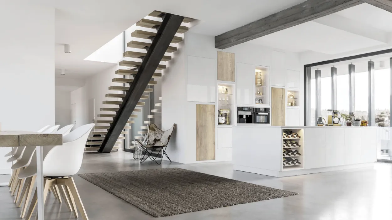 Wall flush niches can also be used in kitchens. Thanks to the several finishes of the front doors it is possible to create captivating matchings to create a bespoke composition completely flush to the wall. Doors can be made of glass, lacquered panels, ennobled, can be painted, or also be covered with wallpaper at will. Glass transparency creates a dynamic wall, thanks to the variable depth of inner spaces and can highlight the backside that Doal offers in several finishes, from glass to mirror, from ceramic to metal.