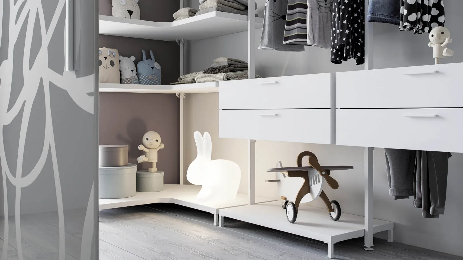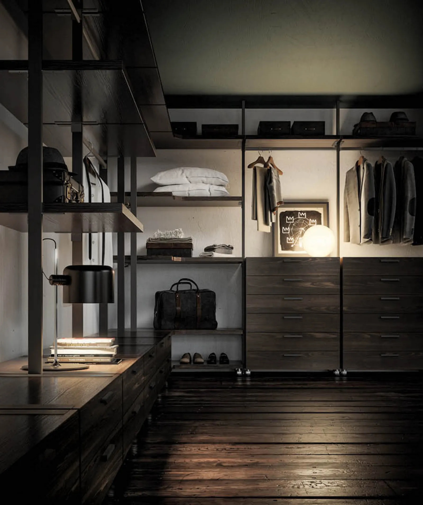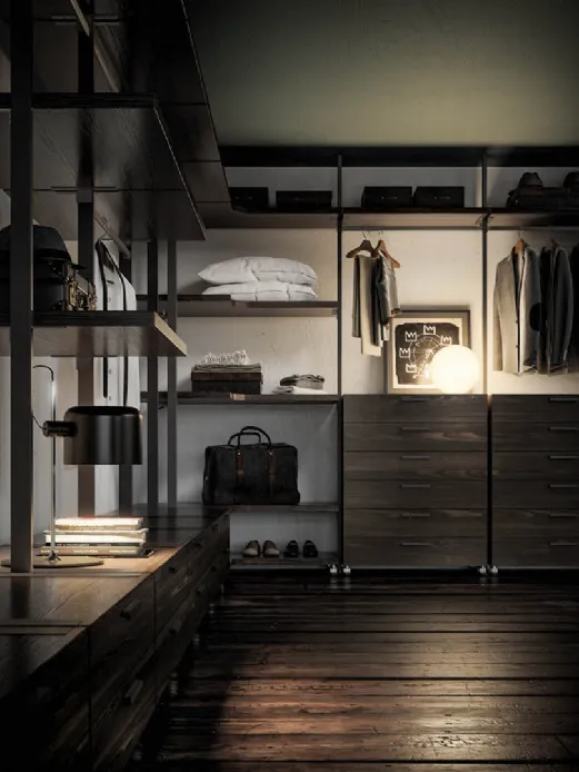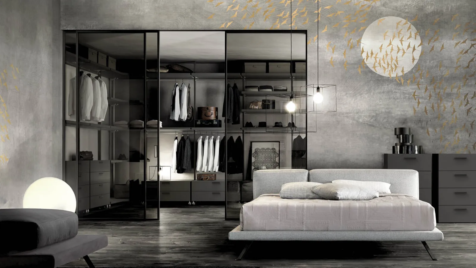 With Doal solutions, it is possible to find the perfect matching between sliding panels that close the closet and the inner equipment, supported by aluminium pillars that are available in the same finishes as the panels ones, matching coat hangers, handles, and hardware.