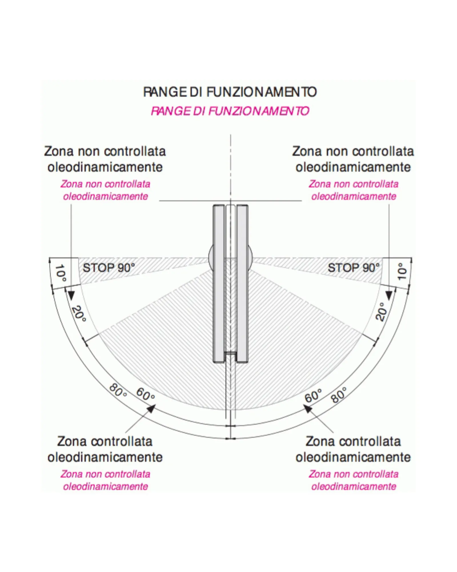 The wind door is fully made of glass and is characterized by oleodynamic hinges that allow for opening in both directions, both pushing and pulling, with adjustments applicable to the closure speed and to the final twitch of the door. Lateral jambs are not needed, as it happens in traditional hinged doors, obtaining an aesthetic result that is very practical and minimalist. In the wall hole only the glass is visible, which is available in the following versions: transparent, opal, acidic, bronze, smoke grey, or lacquered. Handles and hinges are available in grey or can be painted with your favourite colour.